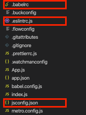 좌측의 이미지는 React Native를 이용해 처음으로 생성한 폴더&파일이다.